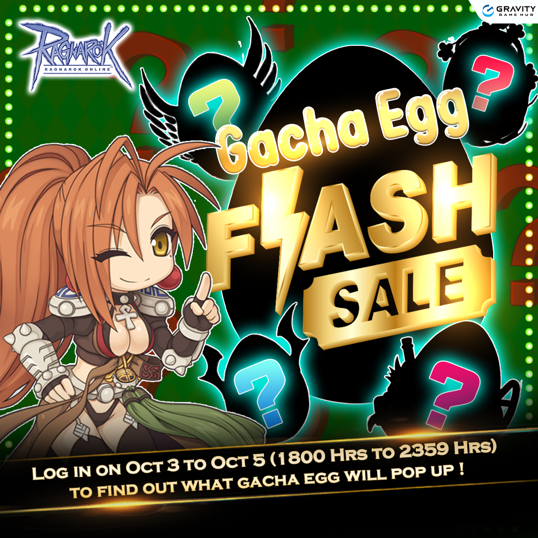 A gacha egg will appear for a limited time at 1800 HRs - 2359 Hrs on Oct 3 to 5. Login to find out which one it is. You can buy as much as 999 per account.