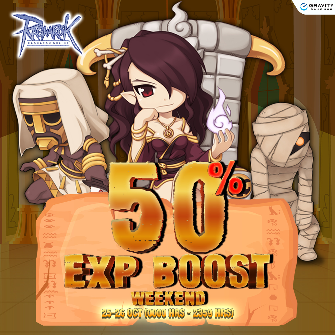 A special server-wide 50% experience boost will be available from Oct 25, 0000hrs to Oct 26, 2359hrs.The boost can be stacked with experience manuals. Please enjoy!