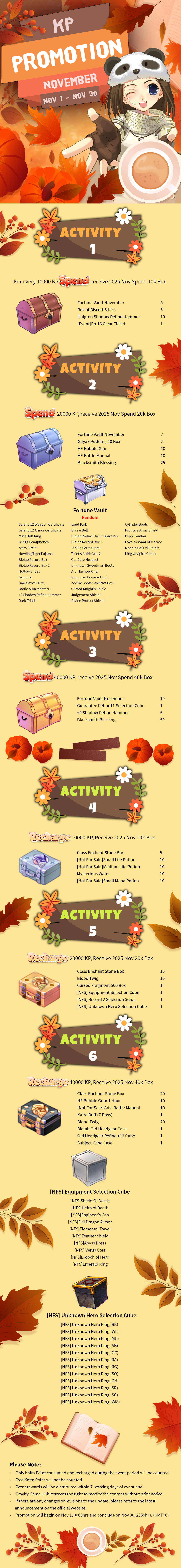 - Only Kafra Point consumed and recharged during the event period will be counted.