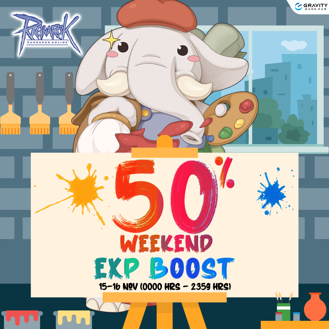 A special server-wide 50% experience boost will be available from Nov 15, 0000hrs to Nov 16, 2359hrs.The boost can be stacked with experience manuals. Please enjoy!