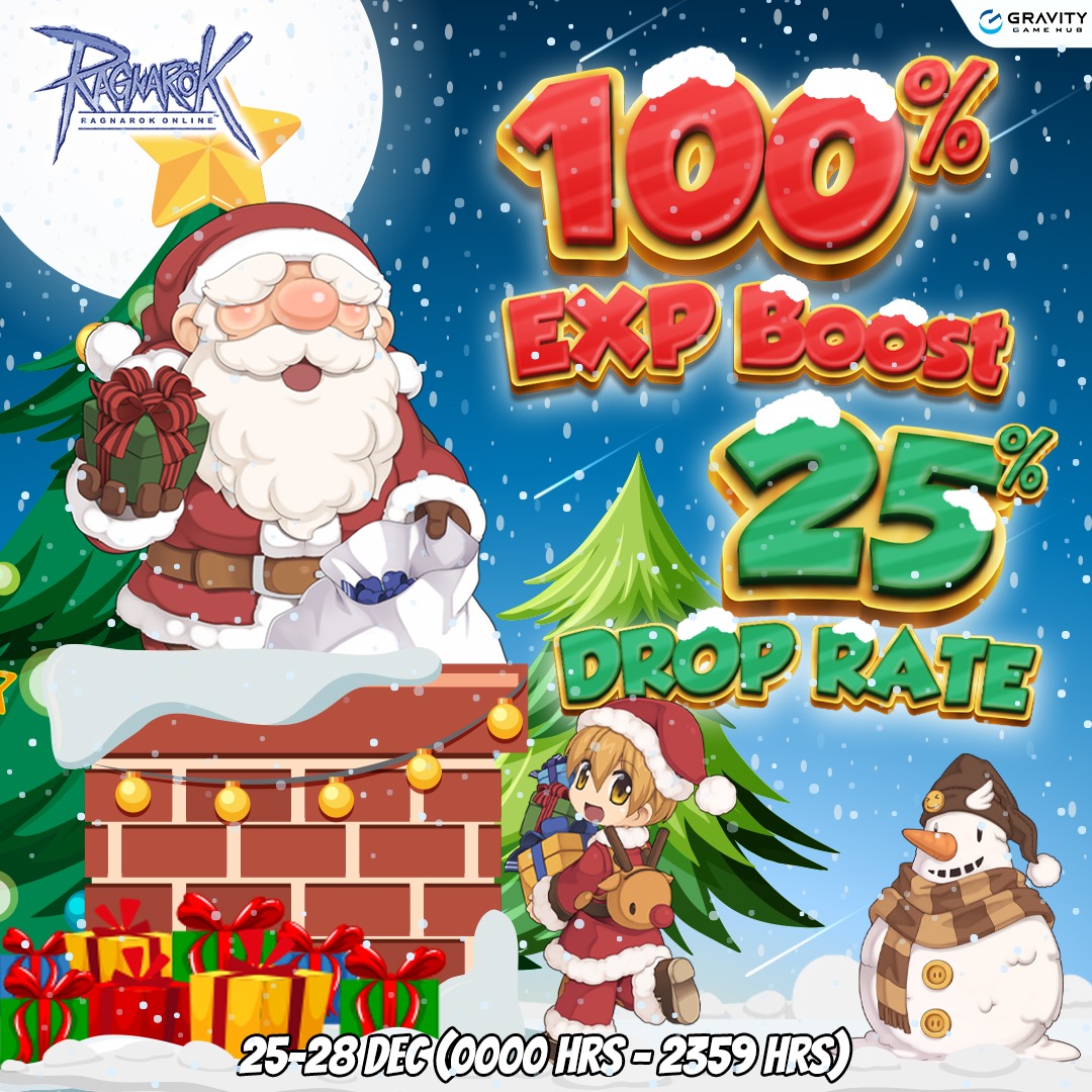 A special server-wide 100% experience boost and 25% Drop Rate boost will be available from Dec 25, 0000hrs to Dec 28, 2359hrs.
