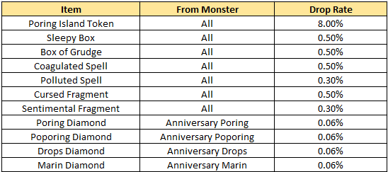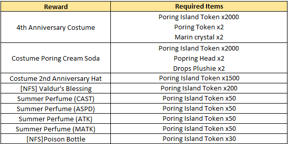 - Poring Island Tokens cannot be stored in Kafra Storage.