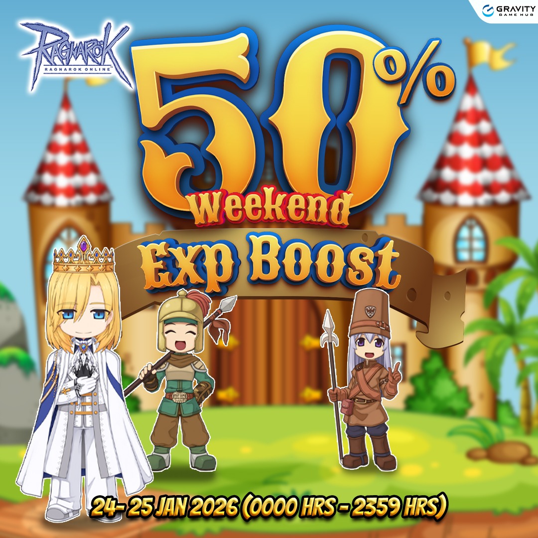 A special server-wide 50% experience boost will be available from Jan 24, 0000hrs to Jan 25, 2359hrs.The boost can be stacked with experience manuals. Please enjoy!