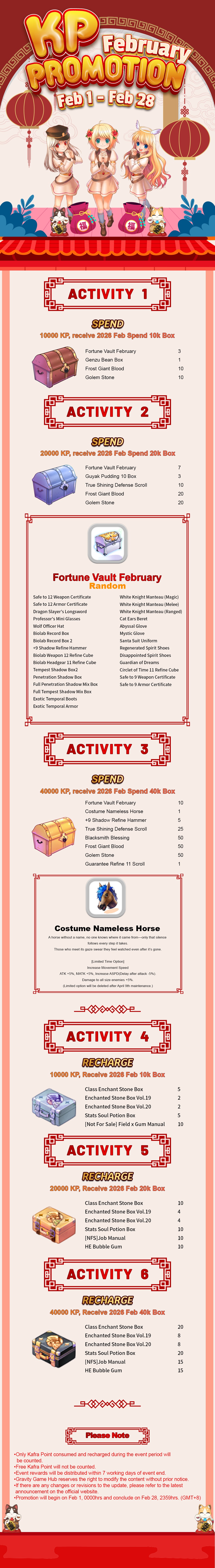 - Only Kafra Point consumed and recharged during the event period will be counted.
