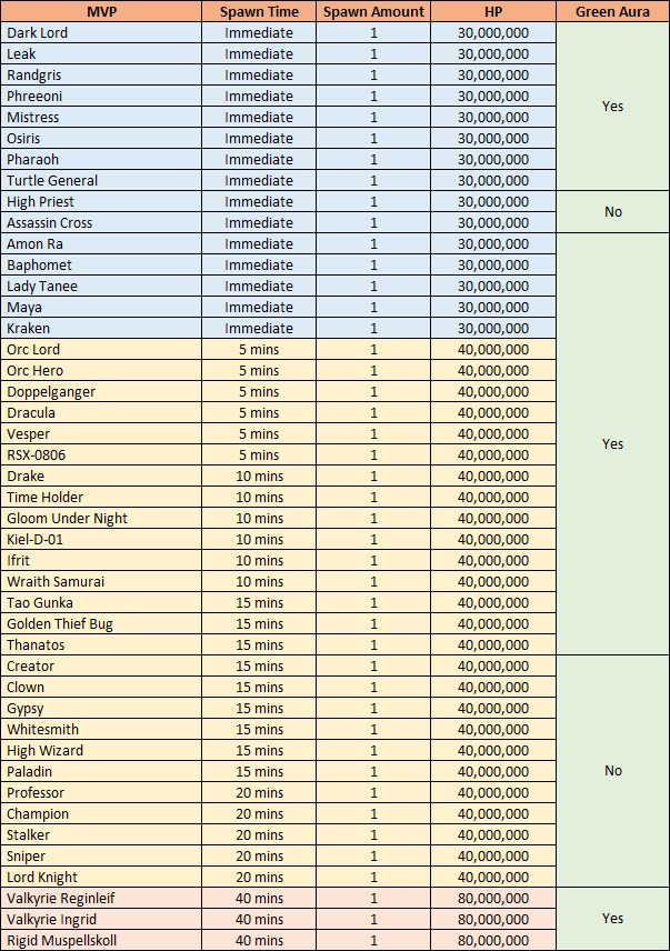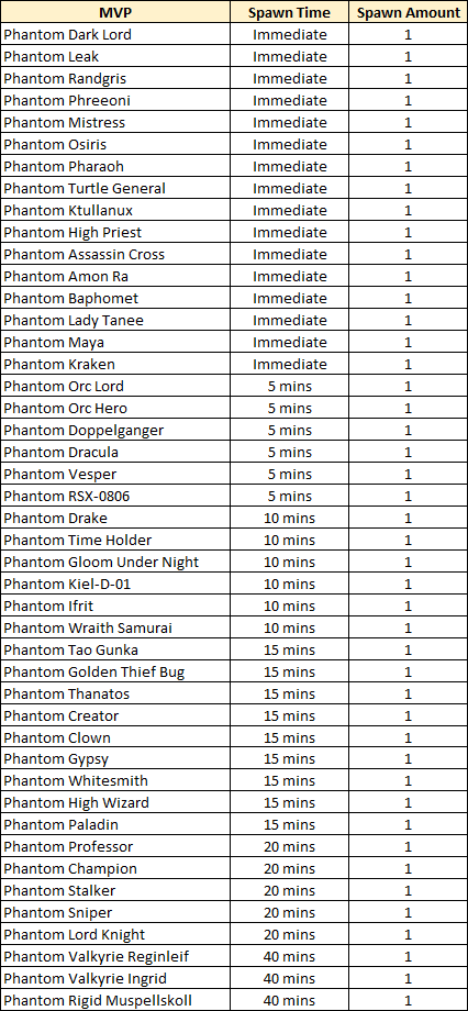 - The event area is filled with MVP monsters that have a faster respawn rate. Some MVPs will spawn multiple times, while others will only spawn once. All MVP monsters are shared and can be targeted by any player within the event map. Teleportation is disabled on this map.