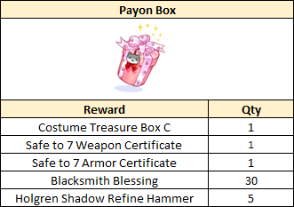 Payon Box is eligible for Ranger, Maestro, Wanderer, Mechanic, and Sura