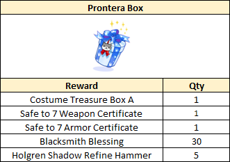 Prontera Box is eligible for Rune Knight, Royal Guard, Shadow Chaser, Genetic, and Star Emperor