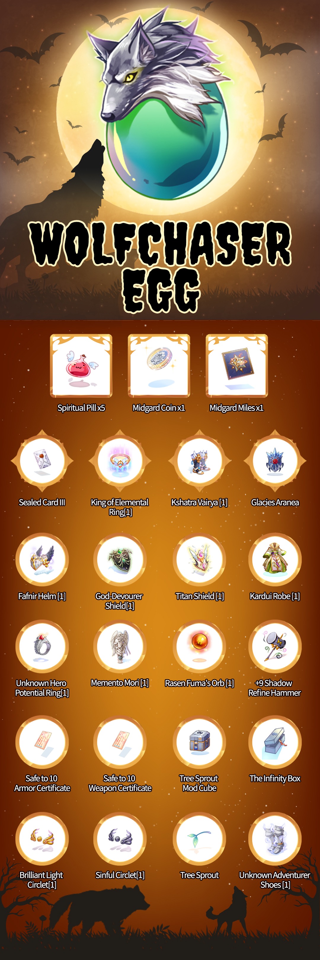 WOLFCHASER EGG COMPLETE LIST