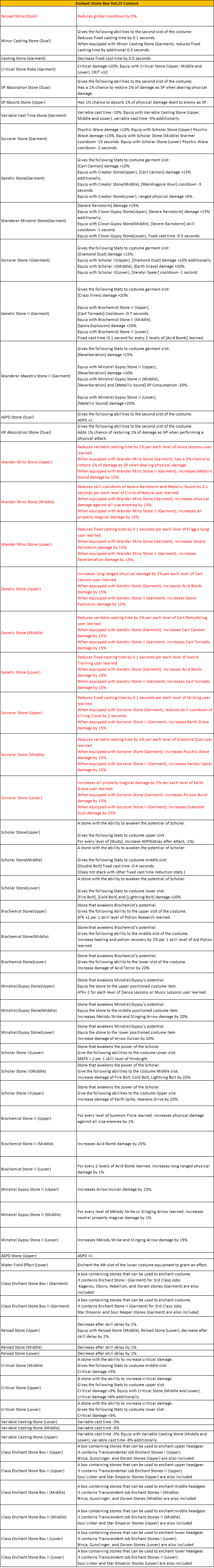 Bring your new costumes to Designer Heidam in Malangdo and you can receive Enchant Stone Box Vol.25.When you've received the effect stones, speak to Gurjio Gurmani to use it.Click here for new costumes.Enchant Stone Box Table