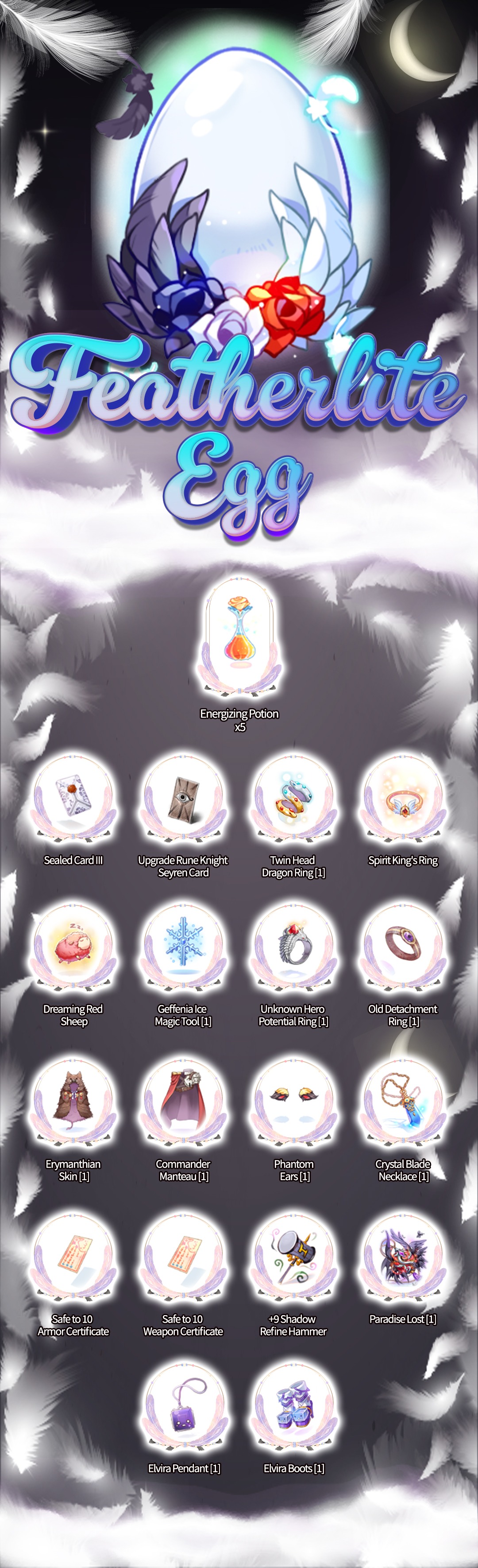 FEATHERLITE EGG COMPLETE LIST